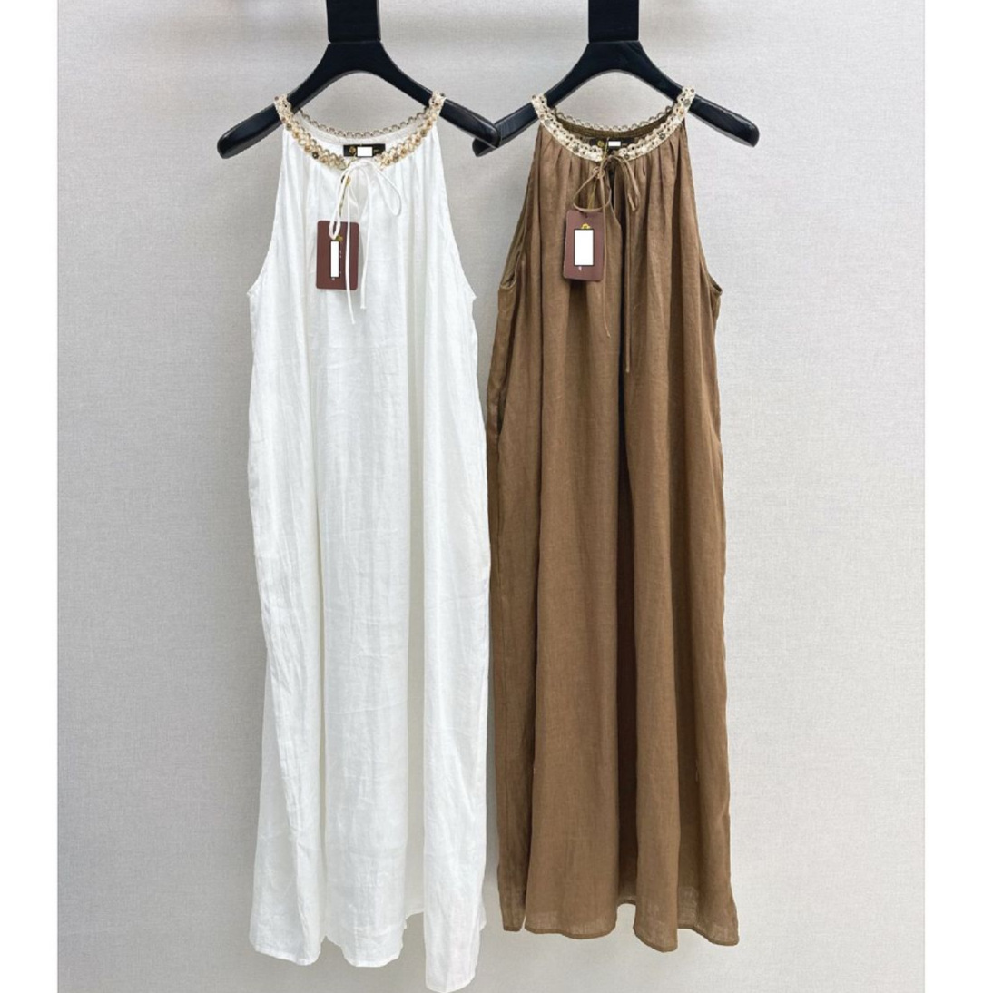 深圳南油25春夏高端女装温柔气质简约亚麻无袖连衣裙