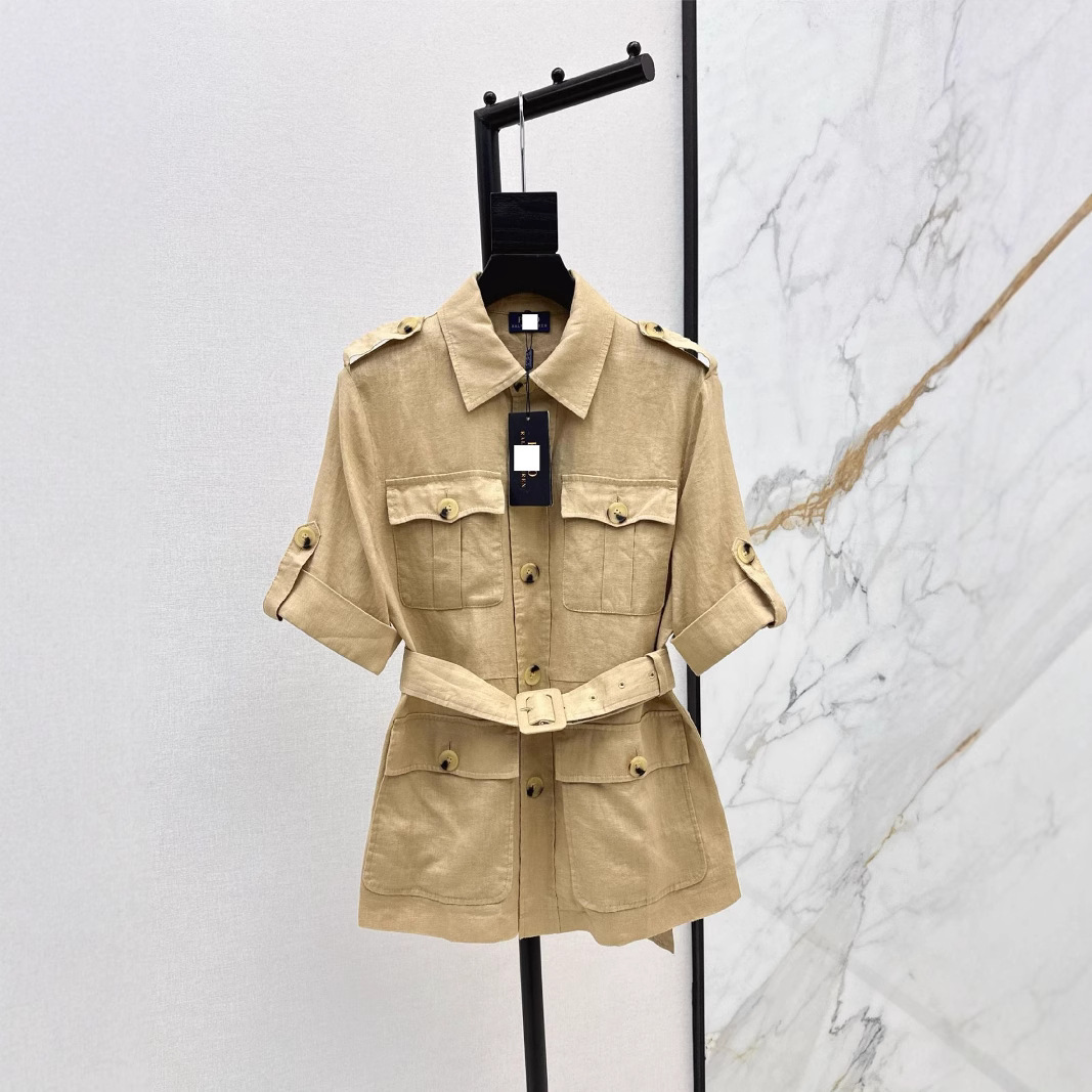深圳南油25春夏女装老钱风休闲可甜可酷卡其色在工装风设计上衣