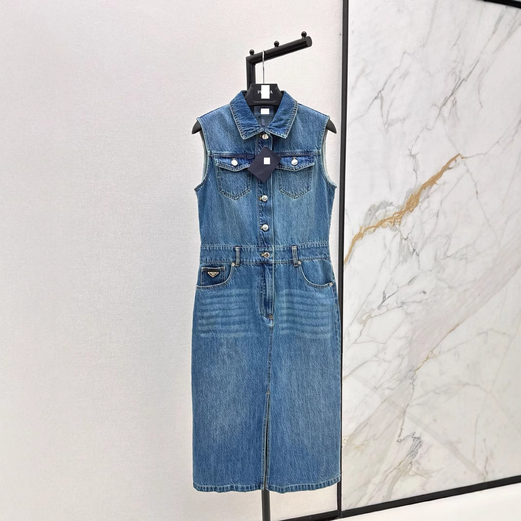 深圳南油25春夏女装通勤日常皆可三角标装饰无袖牛仔连衣裙