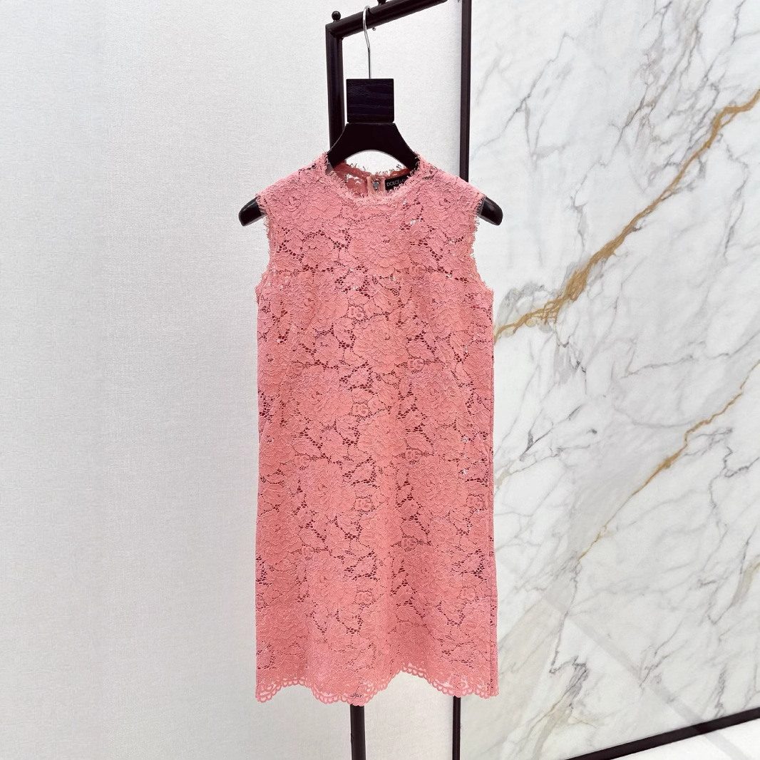 深圳南油25春夏高端女装度假风减龄浪漫迷人柔粉色蕾丝无袖连衣裙