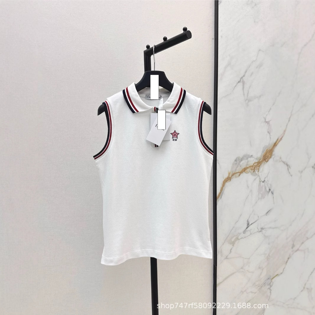 深圳南油25春夏高端女装百搭字母logo刺绣装饰撞色Polo领无袖上衣