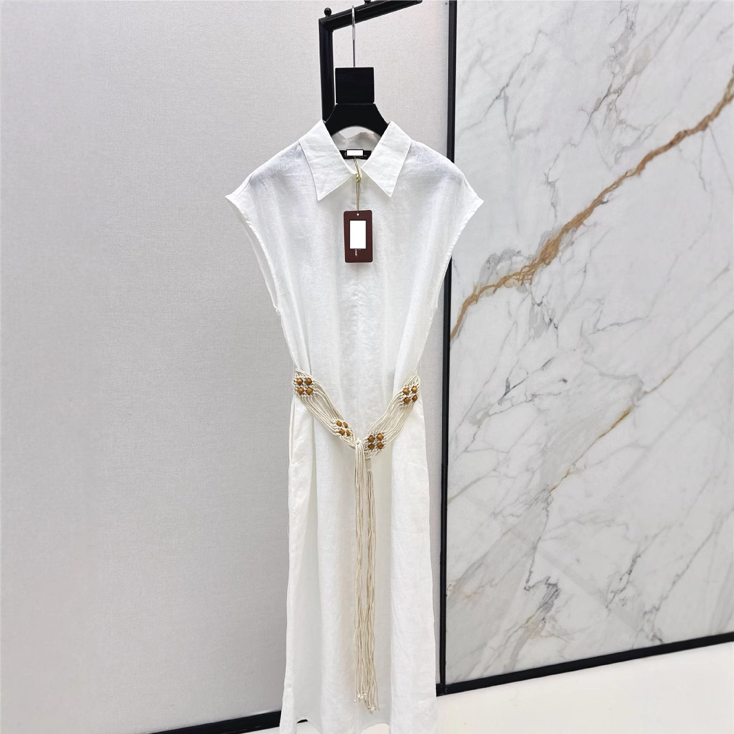 深圳南油25春夏高端女装显瘦超气质老钱风无袖翻领亚麻连衣裙