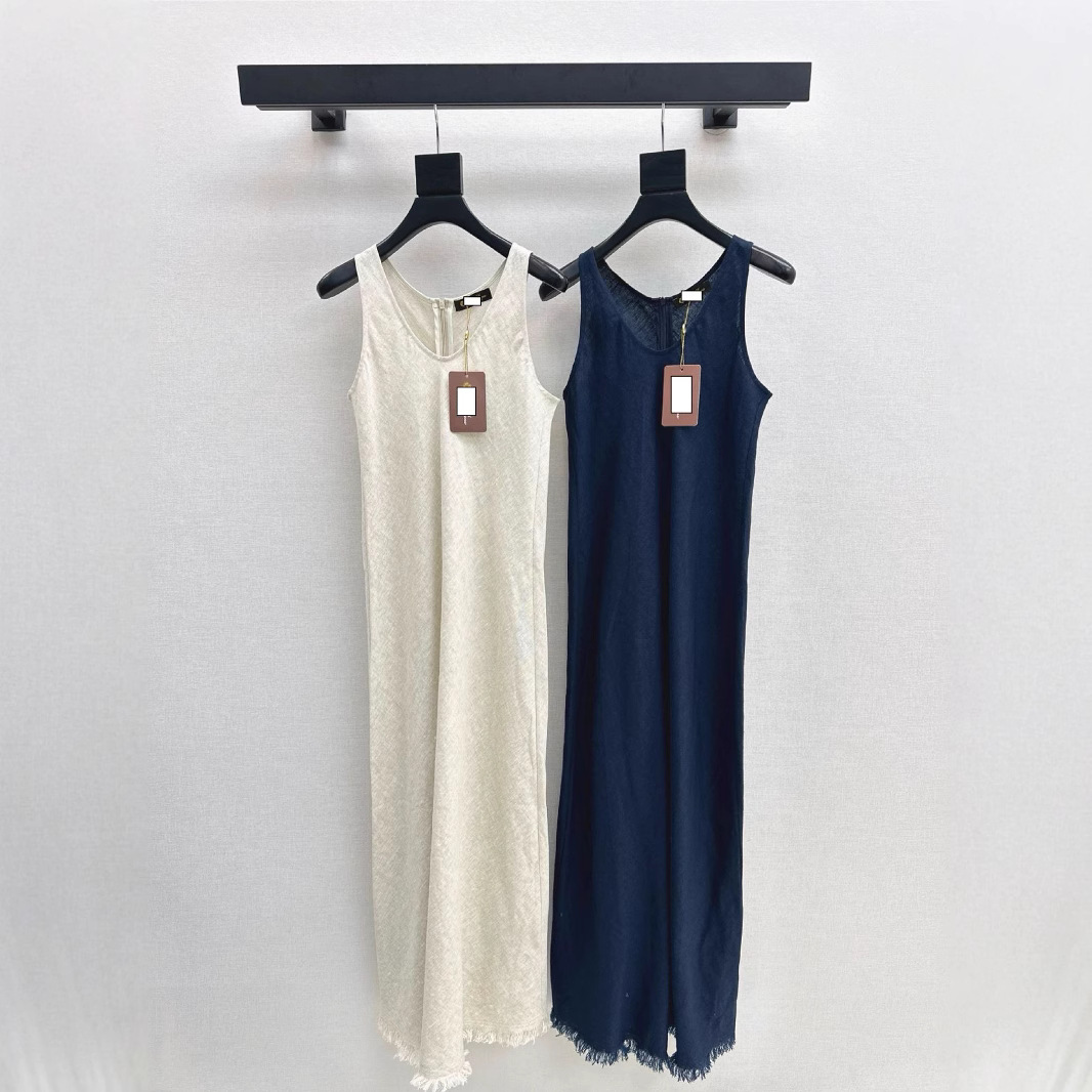 深圳南油25春夏高端女装温柔气质简约松弛亚麻无袖毛边连衣裙