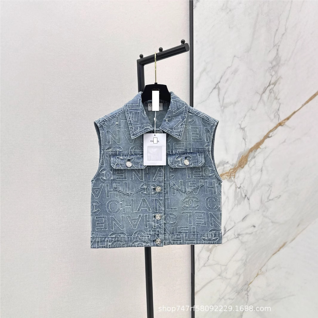 深圳南油25春夏高端女复古牛仔蓝C家洗水做旧小短款牛仔马甲外套
