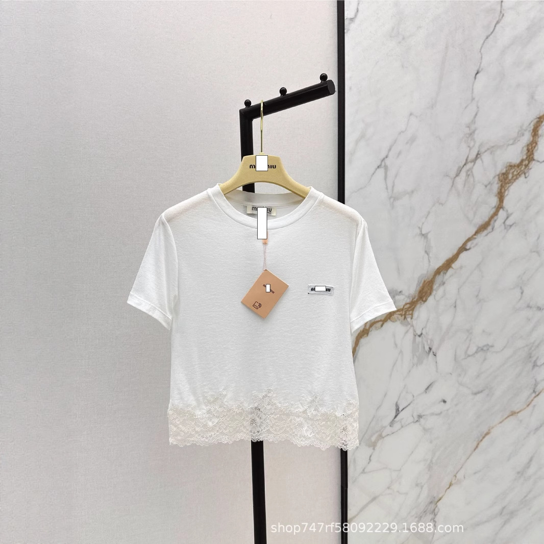 深圳南油25春夏高端女装显瘦叠搭神器拼接蕾丝装饰小短款T恤