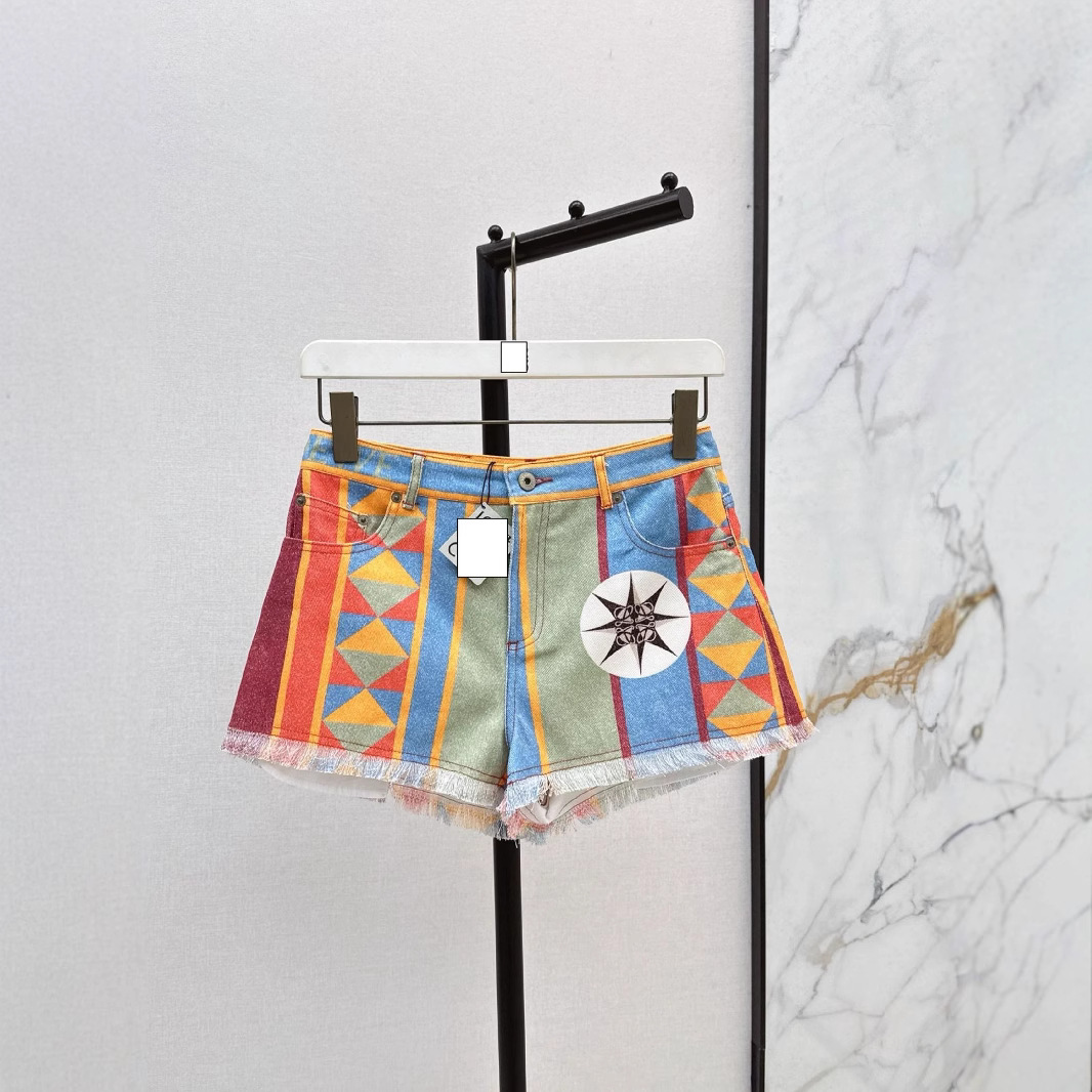 深圳南油25春夏高端女装酷炫甜美少女气质几何印花牛仔毛边短裤