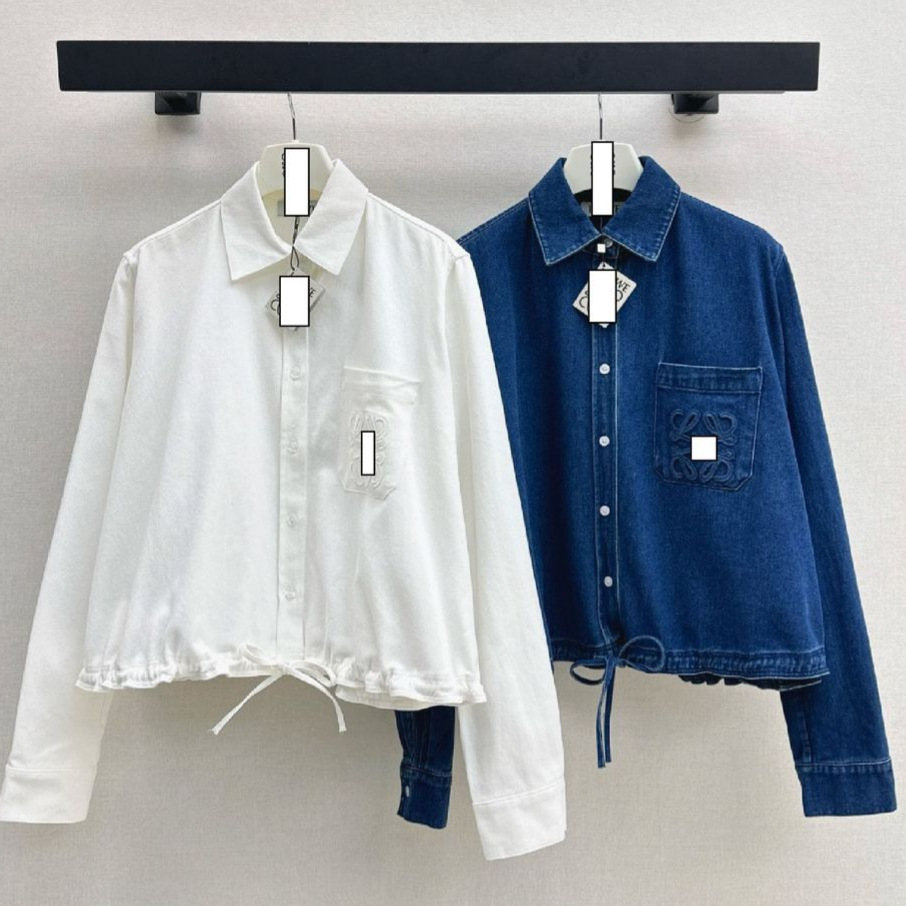 深圳南油25春夏高端女logo刺绣装饰牛仔收腰经典宽松翻领版型衬衫