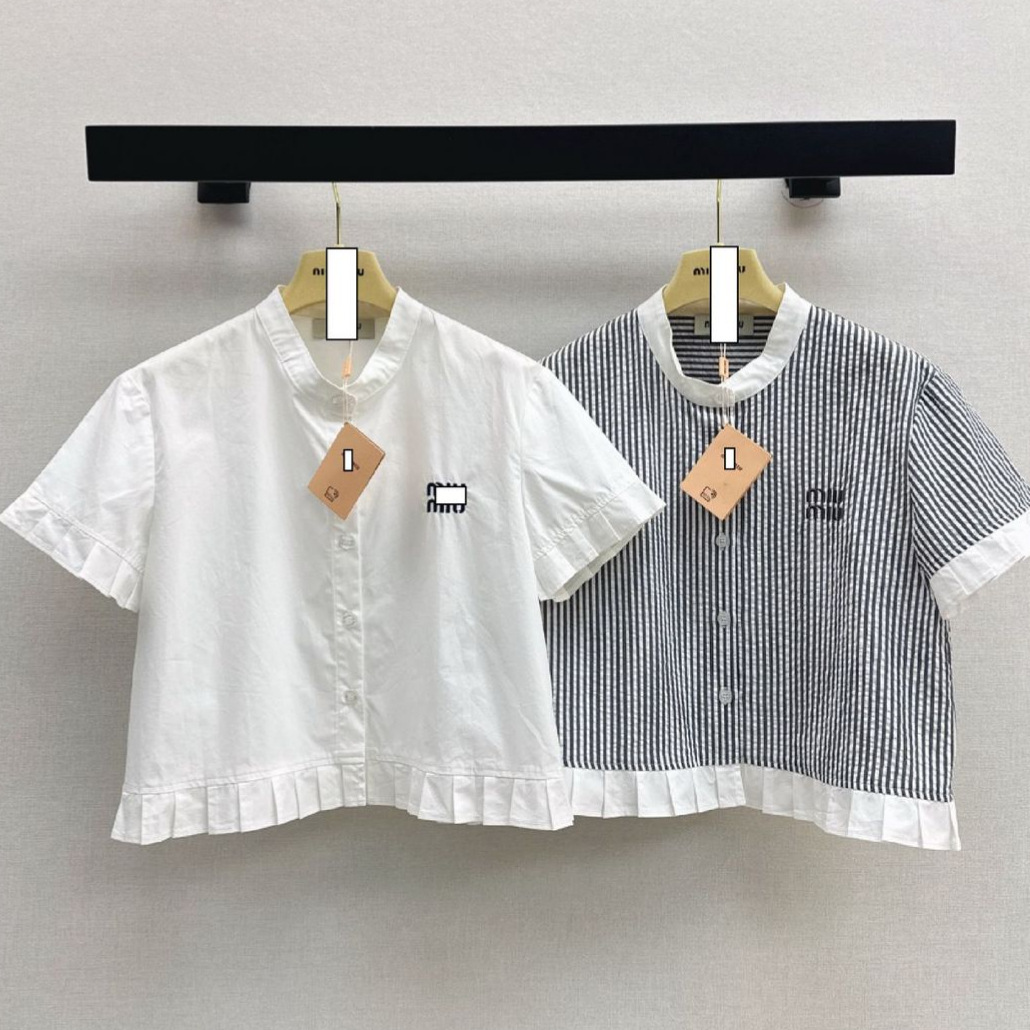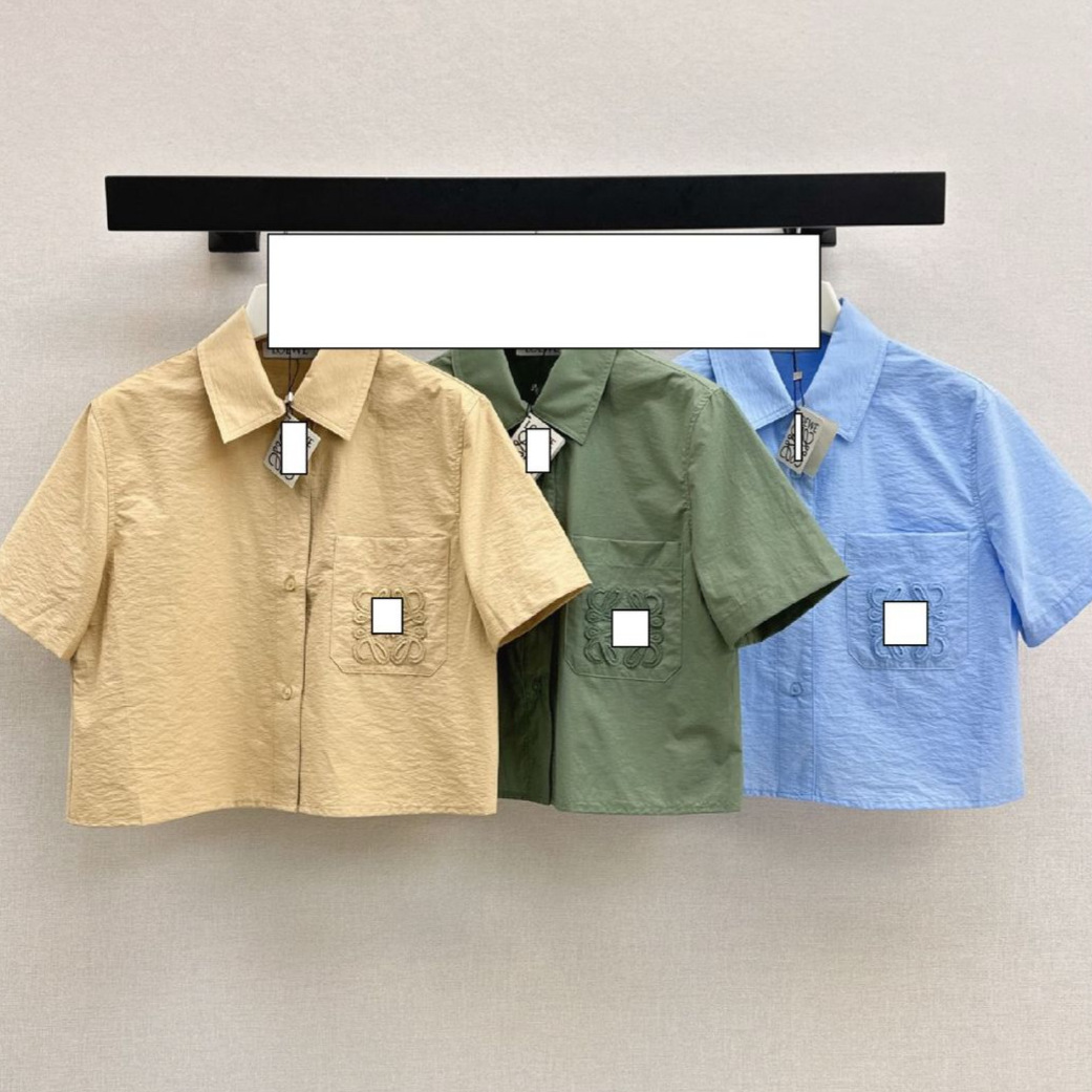 深圳南油25春夏高端女简洁百搭logo字母刺绣小压褶边装饰短款衬衫