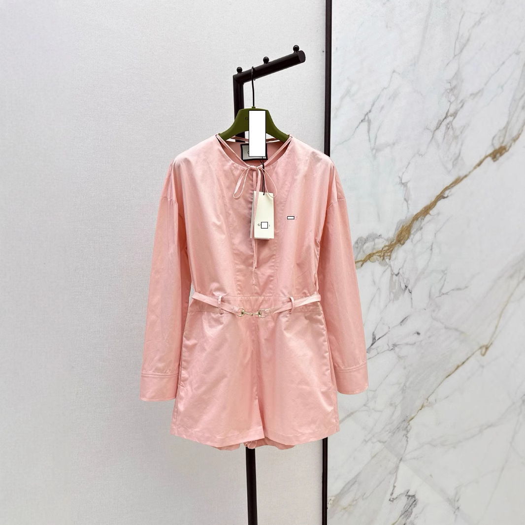 深圳南油25春夏高端女装元气优雅收腰直筒版型显瘦水蜜桃粉连体裤