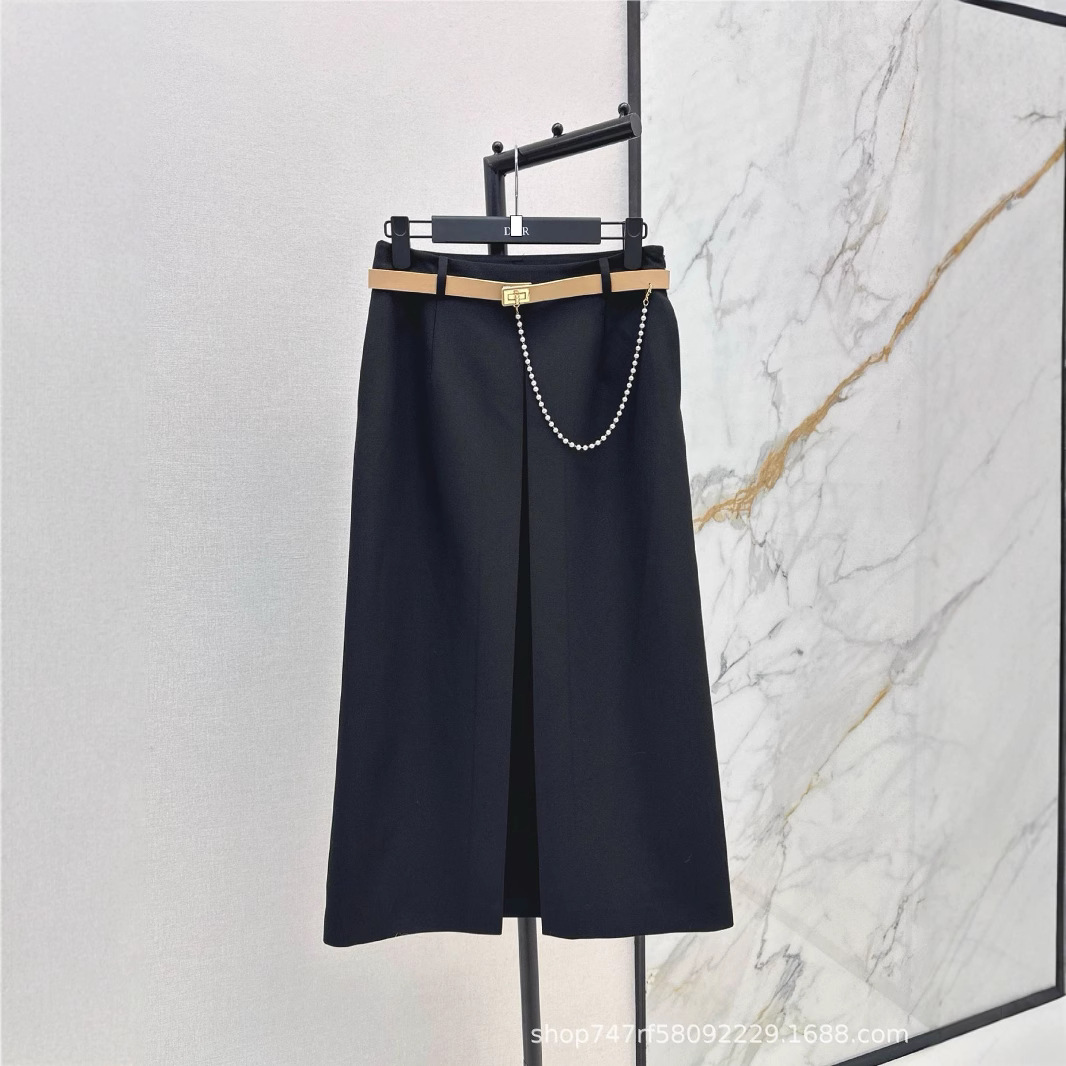 深圳南油25春夏高端女装显腿长高腰腰带拉链装饰A字压褶长半裙