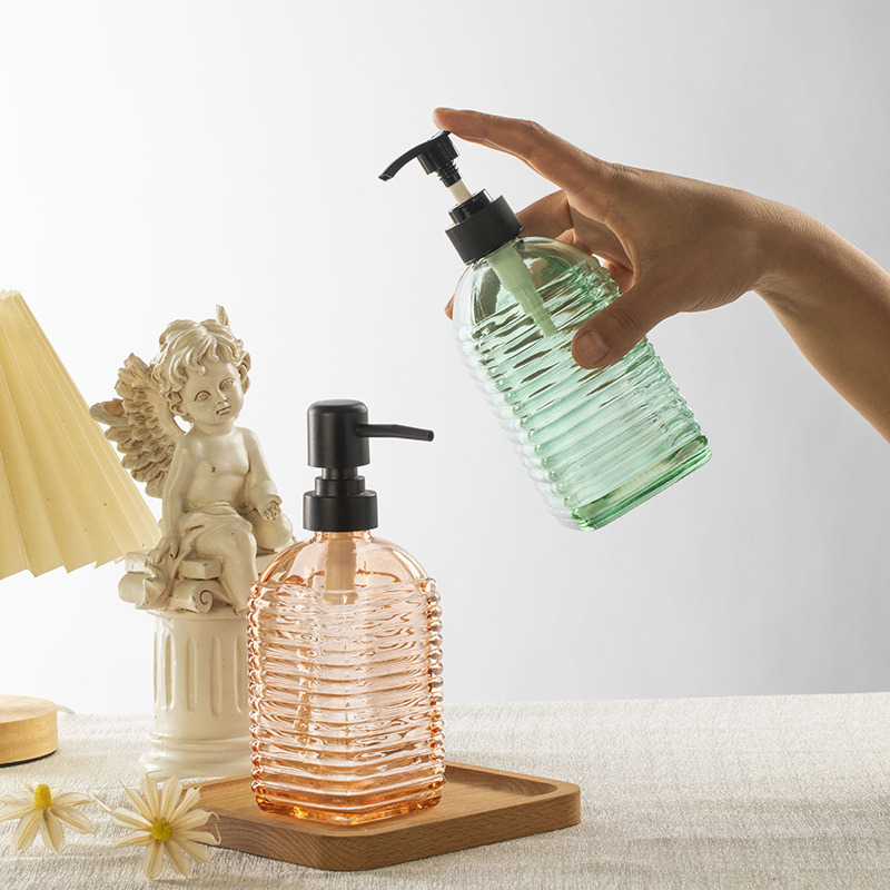 透明ガラス420mlプッシュ式手洗い液瓶分注瓶大容量シャンプー入浴露瓶空瓶