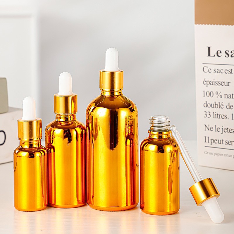現物卸売り高颜値金メッキガラス精油瓶避光ガラス瓶携帯旅行分装ガラス空瓶