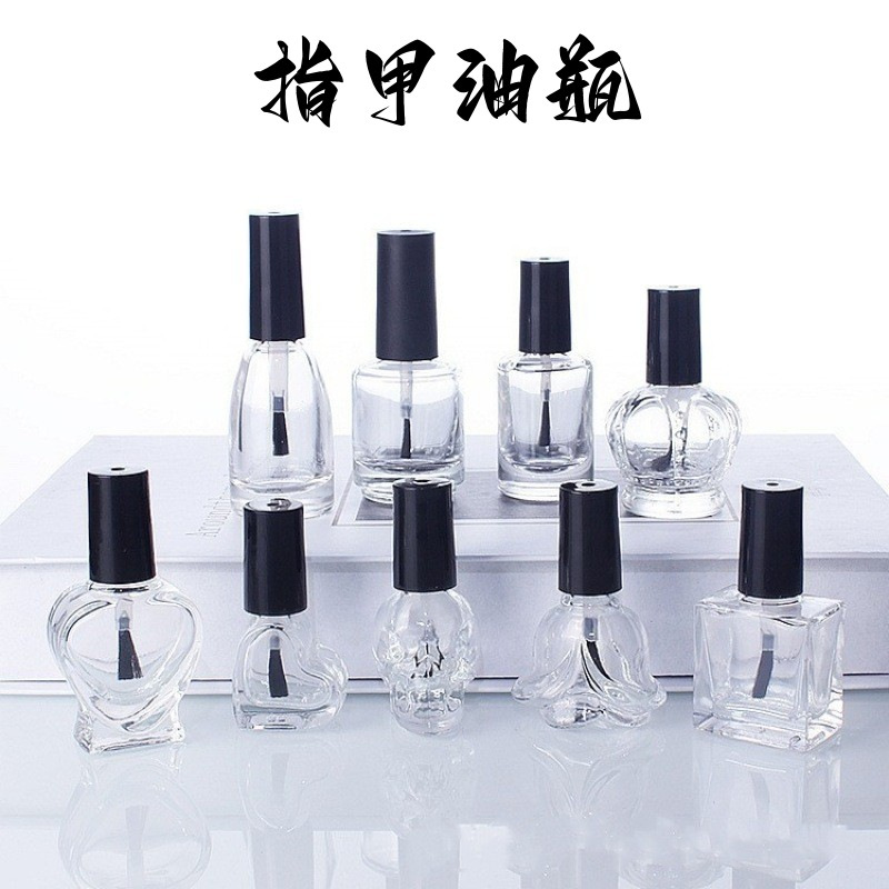 透明複数規格の形状容量ネイルアートとブラシガラスのマニキュア瓶の頬紅分注瓶の空瓶の現物