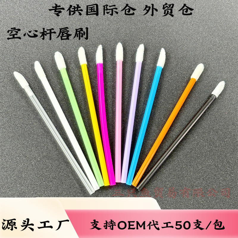メーカークロスボーダー偽まつげ中空棒唇ブラシ口紅ブラシ卸売り植毛唇ブラシ50本唇ブラシ卸売り