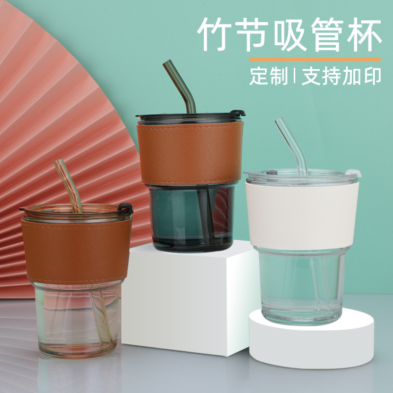 竹節カップストローカップins透明ガラスコップ女子高颜値ジュース飲料カップ地押し広告コップ