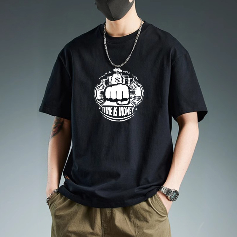 夏の純綿半袖Tシャツメンズトレンディなブランドプリントルーズで多用途なカジュアルボトムラウンドネックTシャツトップ