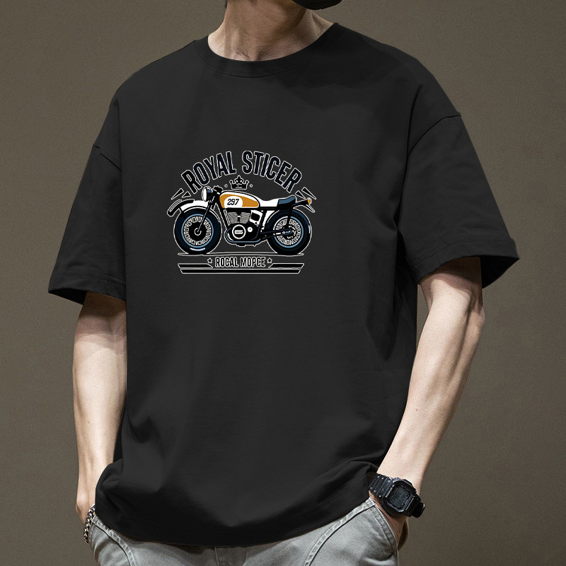 夏用メンズ半袖Tシャツ、純綿、厚手、日本製、シンプルTシャツ、ゆったり、トレンド、万能カジュアルトップス