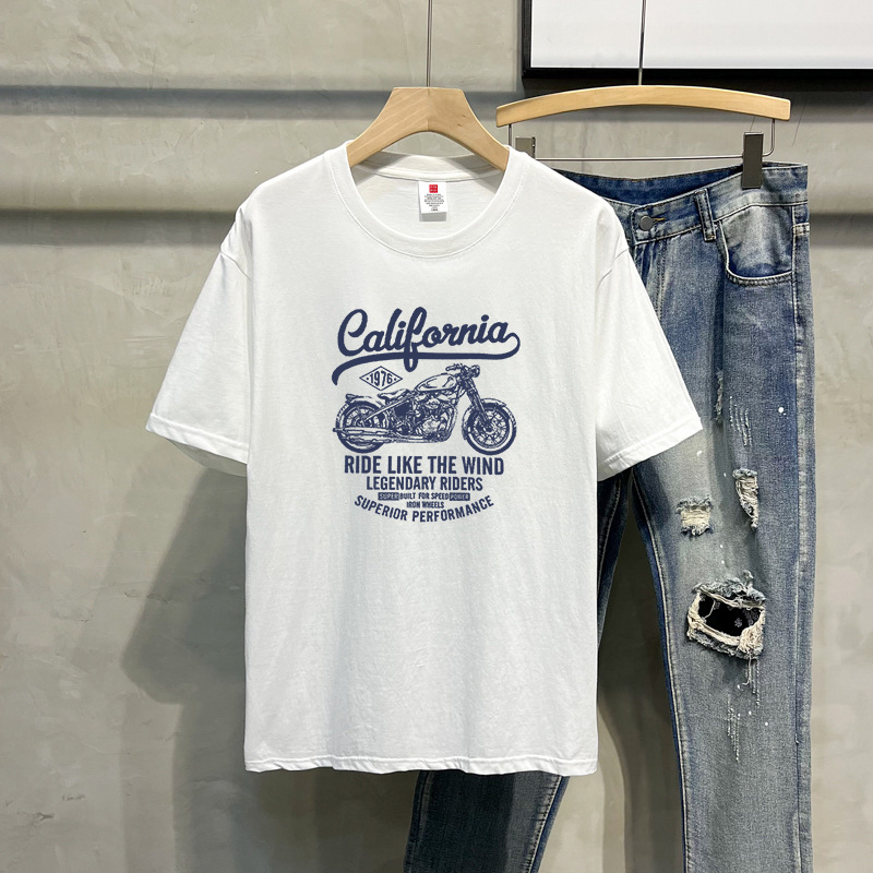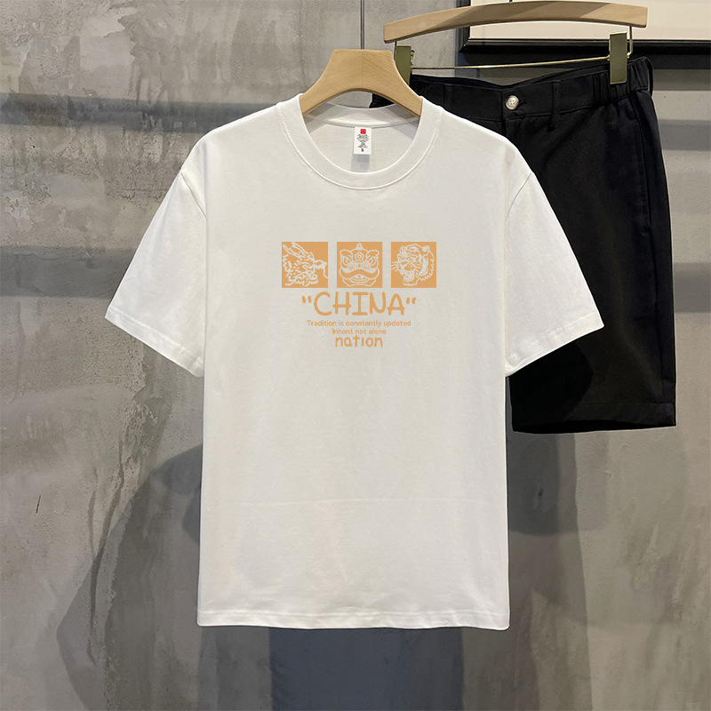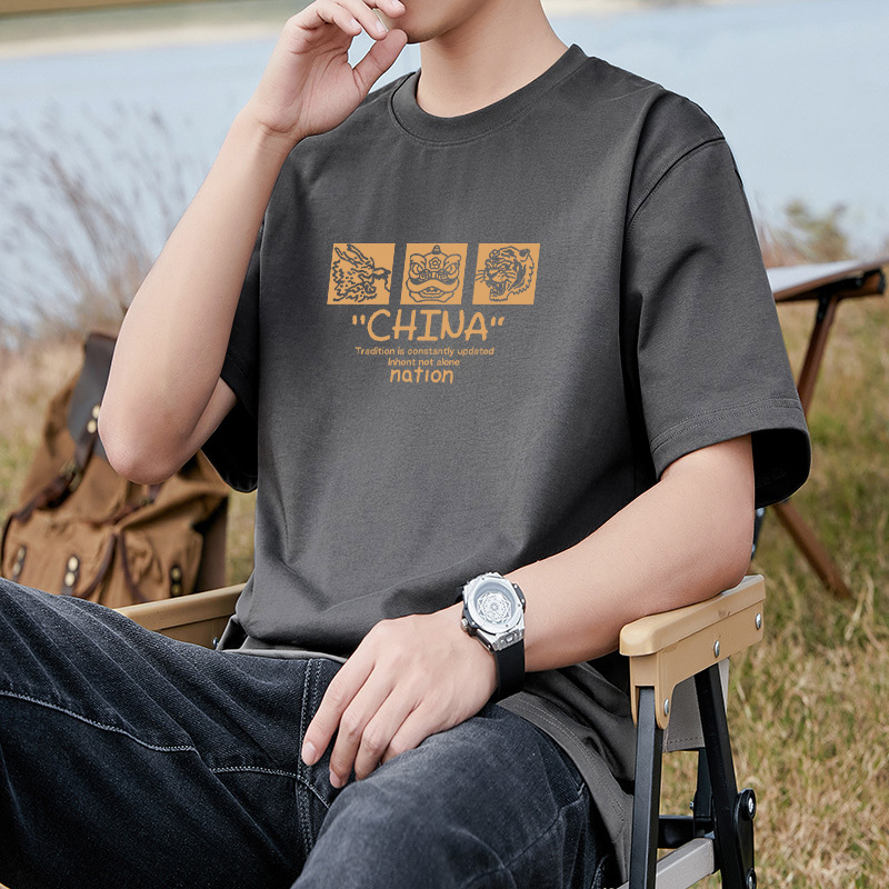 夏の新作プリント半袖Tシャツメンズトレンディな純綿半袖Tシャツ日本製ルーズラウンドネックトップス