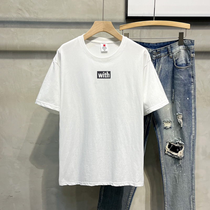 2025 新しいルーズコットン半袖 Tシャツメンズ夏アメリカンプリント半袖インナー Tシャツトレンディなブランドボトリングシャツ