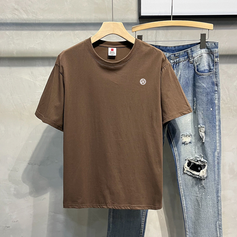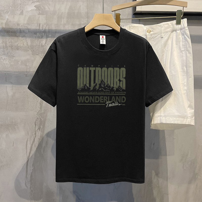 トレンディな純綿メンズルーズ 2025 アメリカ半袖 Tシャツメンズ Tシャツ新しいハイエンド夏ボトリングシャツ