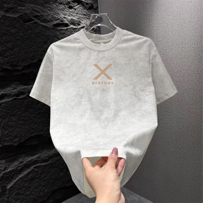 純綿レタープリントヘビーウェイトTシャツメンズ半袖トレンディブランドヨーロッパとアメリカのハイストリート夏アメリカンレトロTシャツ