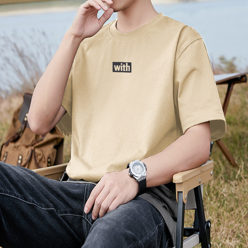 200 グラムヘビーウェイトコットン半袖 Tシャツメンズルーズ半袖 Tシャツボーイズラウンドネックティーンエイジャープリント