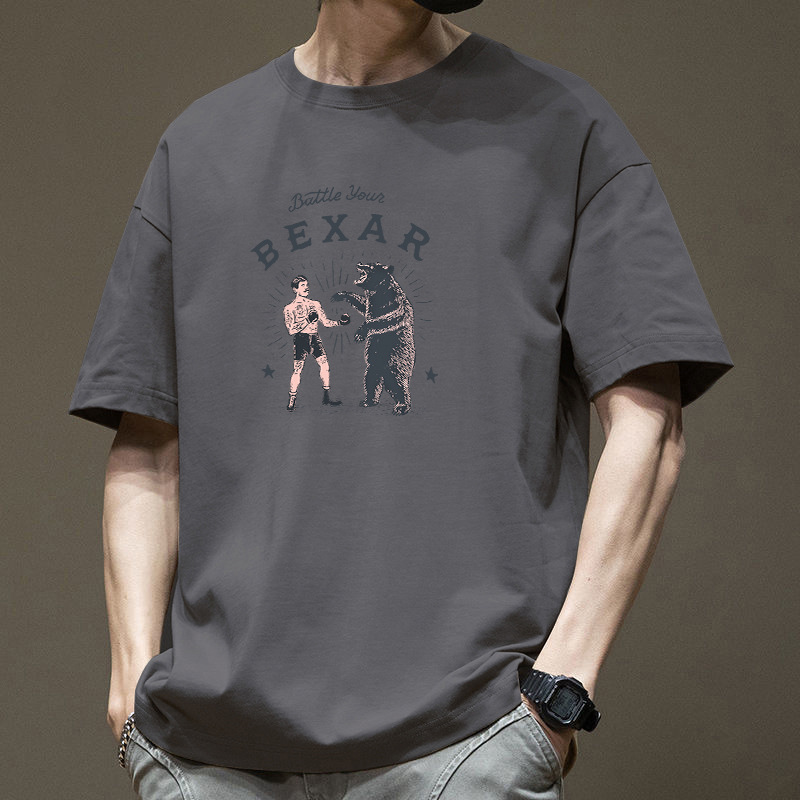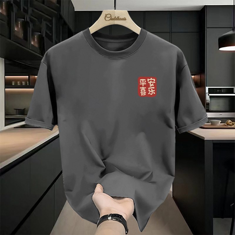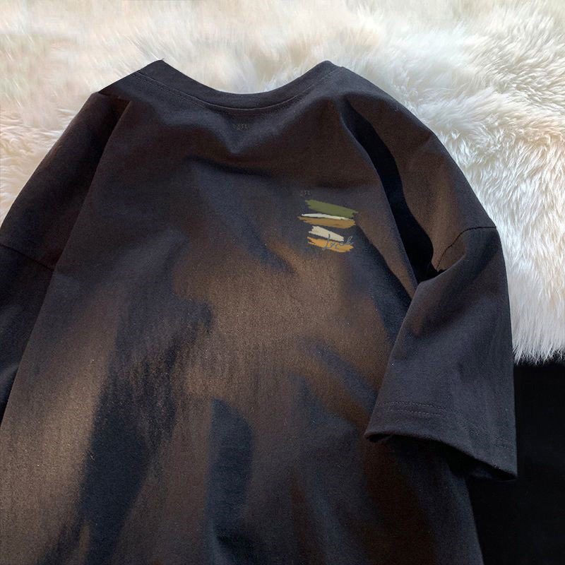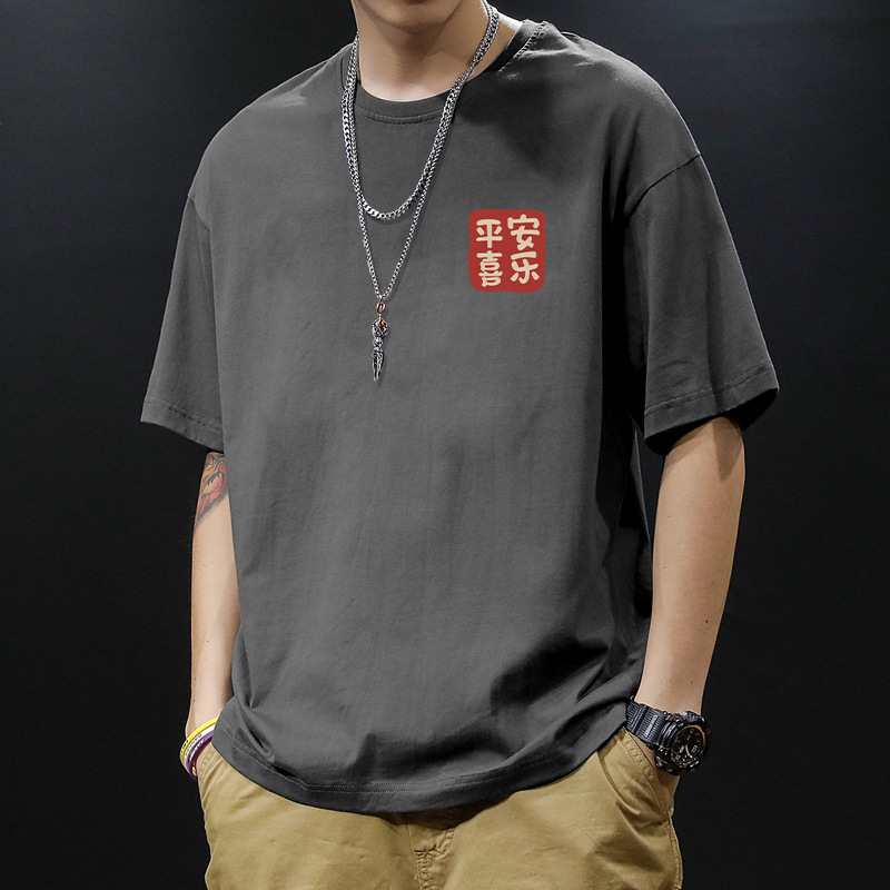 純綿プリント半袖tシャツ男子ins潮牌上服夏ファッションゆるい半袖tシャツ丸襟