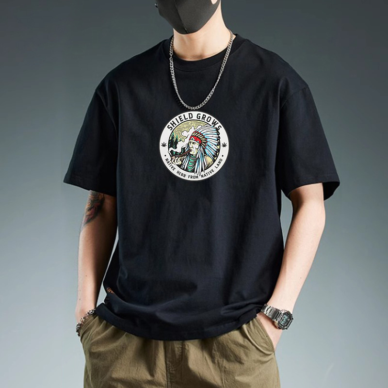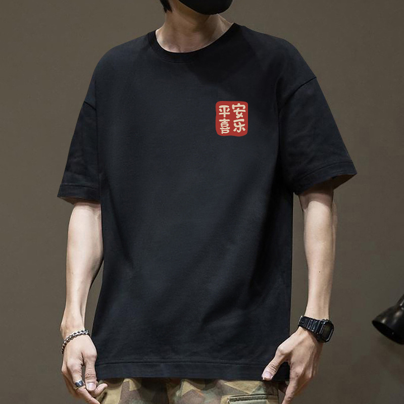 200g重ポンド純綿tシャツ男性夏服アメリカプリント純綿insファッションブランド男性黒半袖