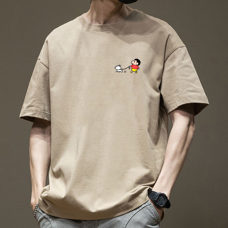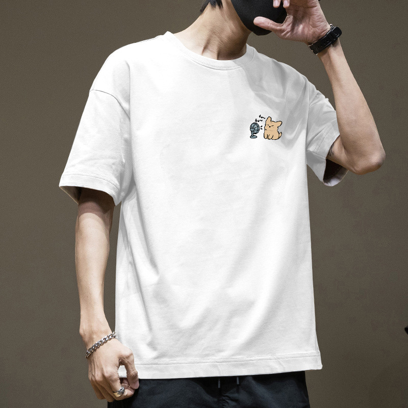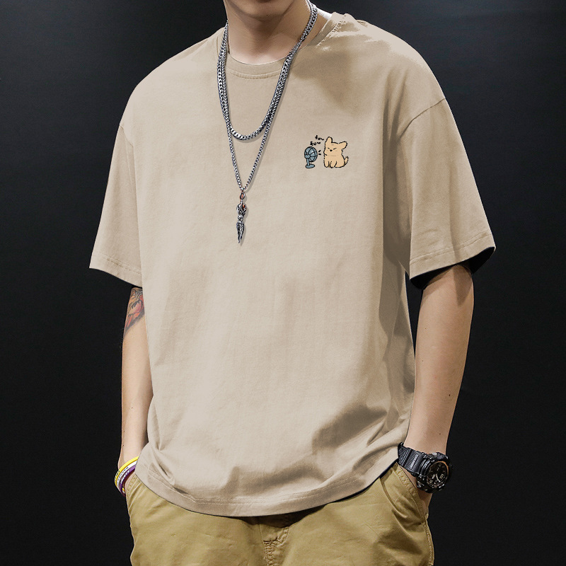 日系の新型夏純綿半袖tシャツ男性ゆるいins潮牌丸襟tシャツ潮上服