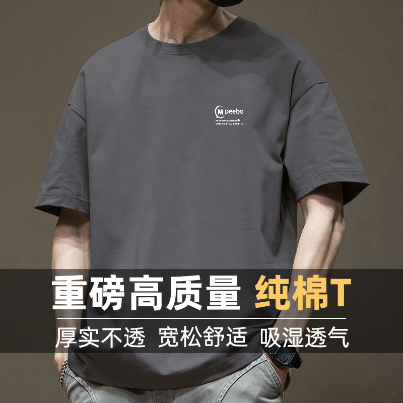 200g重ポンド純綿長袖tシャツ男性半袖夏2025新型高街潮牌潮流ゆるいtシャツ