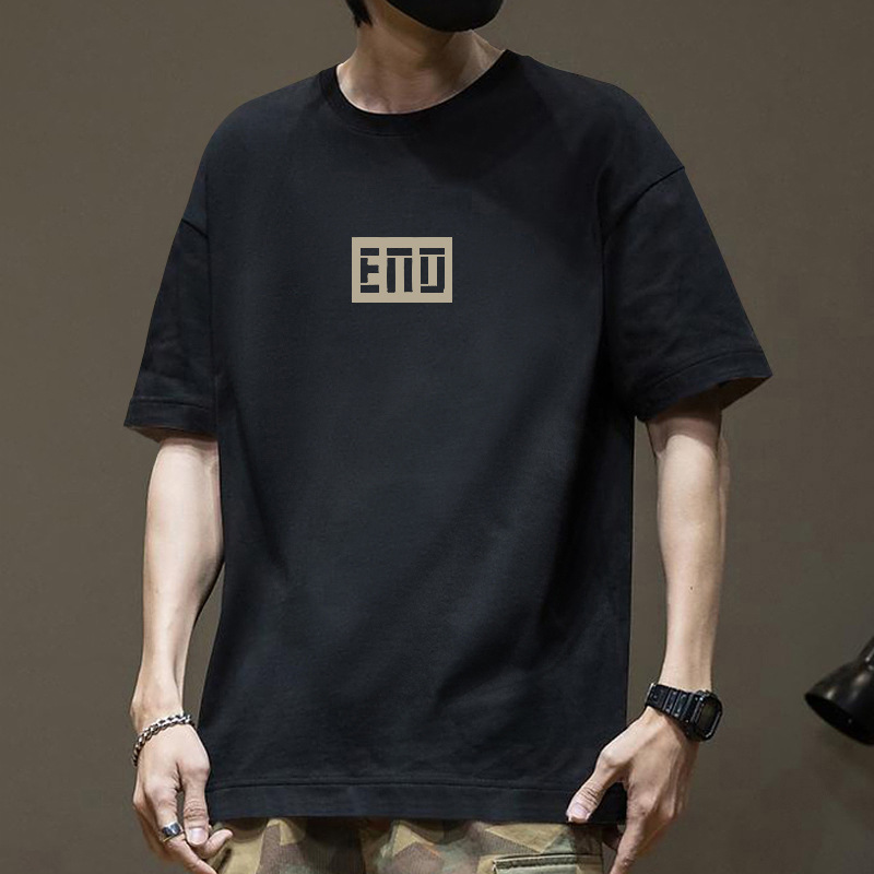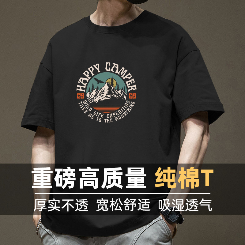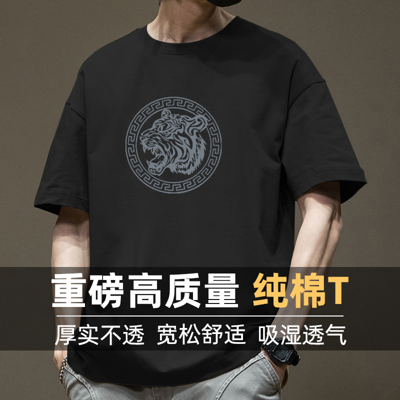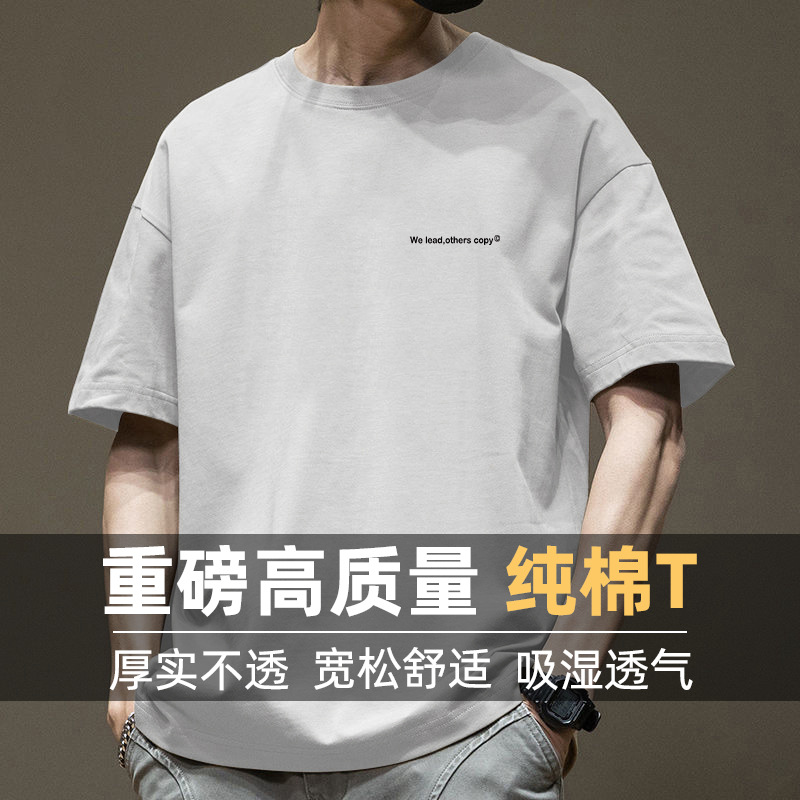 220g重ポンド純綿半袖tシャツ男性ゆるい半袖tシャツ男性丸首青少年プリント