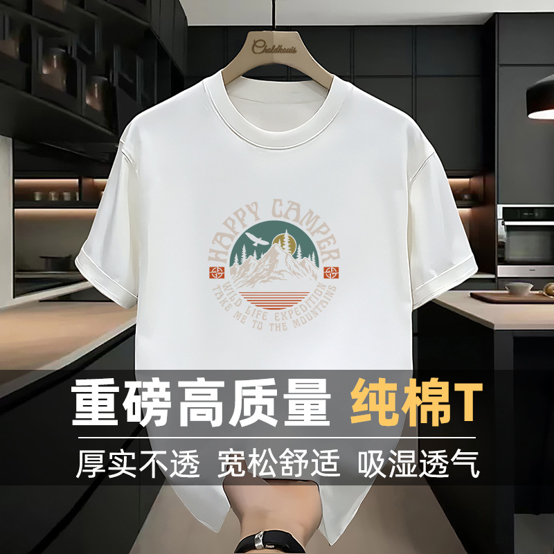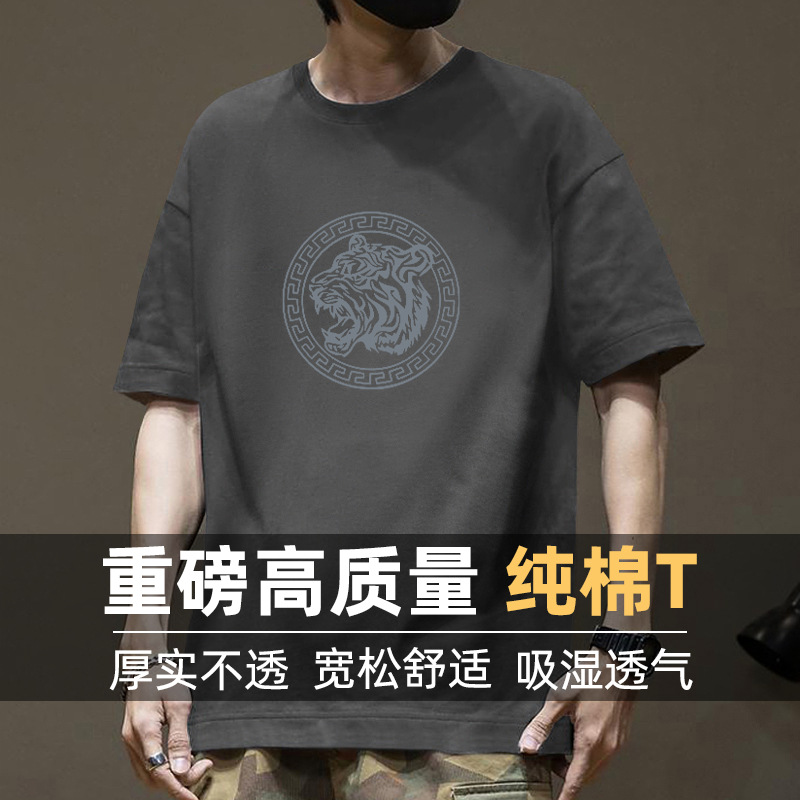 220g重ポンド純綿プリント半袖tシャツ男性潮牌夏白色ゆるいtシャツ