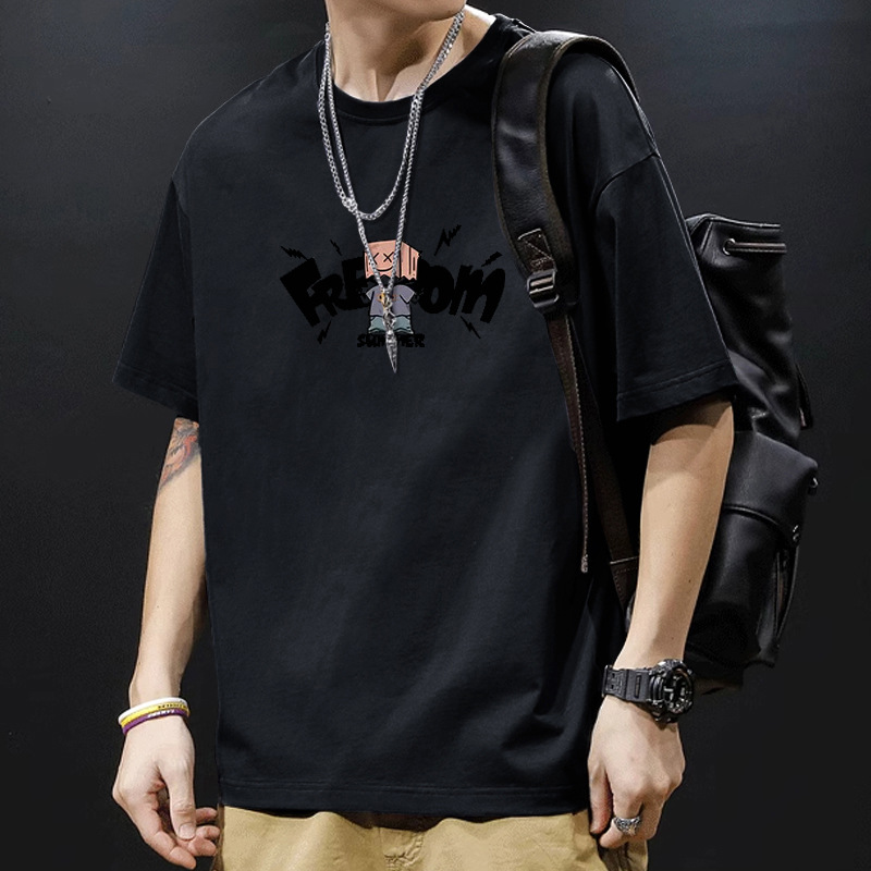 新商品の純綿プリント丸首半袖tシャツ男性ファッションブランドinsファッション夏のゆったりとした服