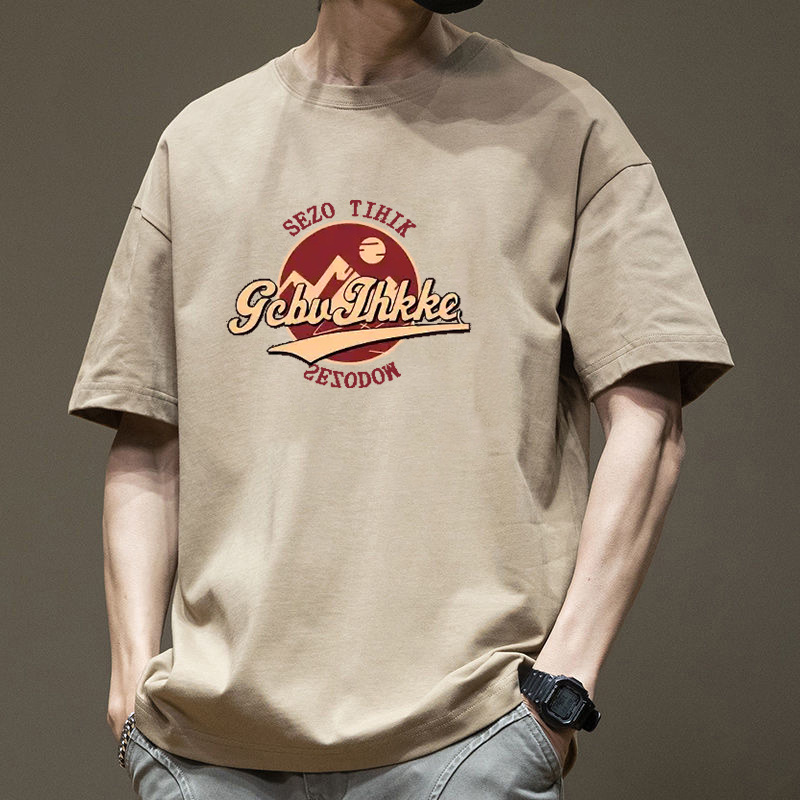 200g重ポンド半袖tシャツ男性ins新夏ゆるいファッションアメリカ文字プリントtシャツ純綿