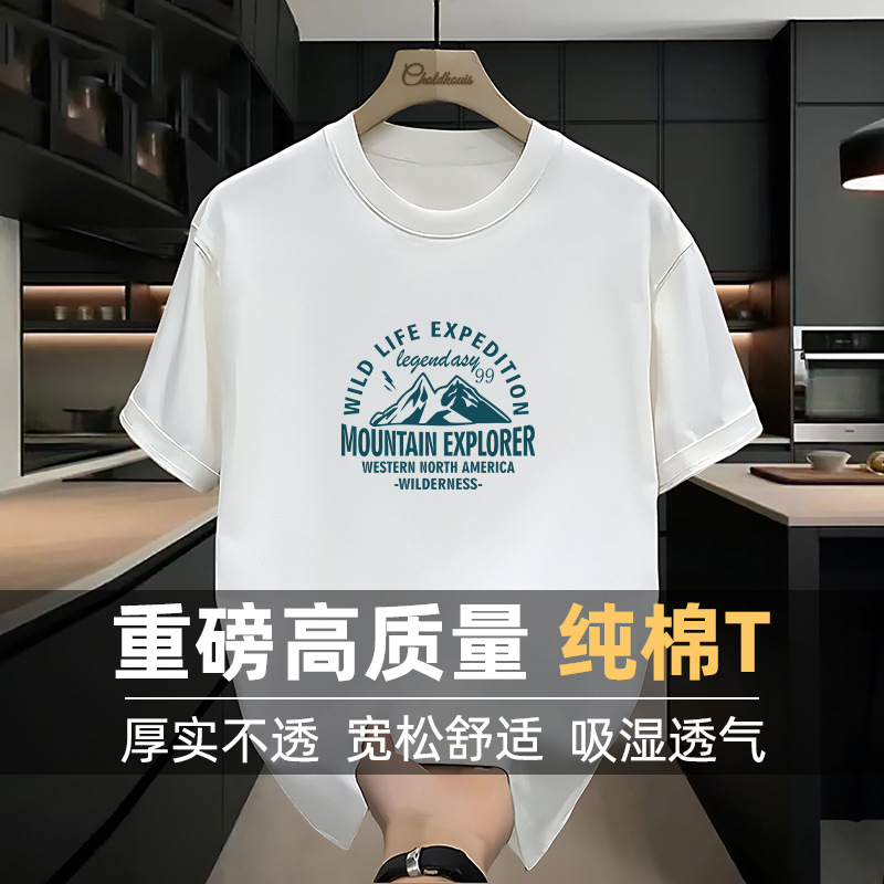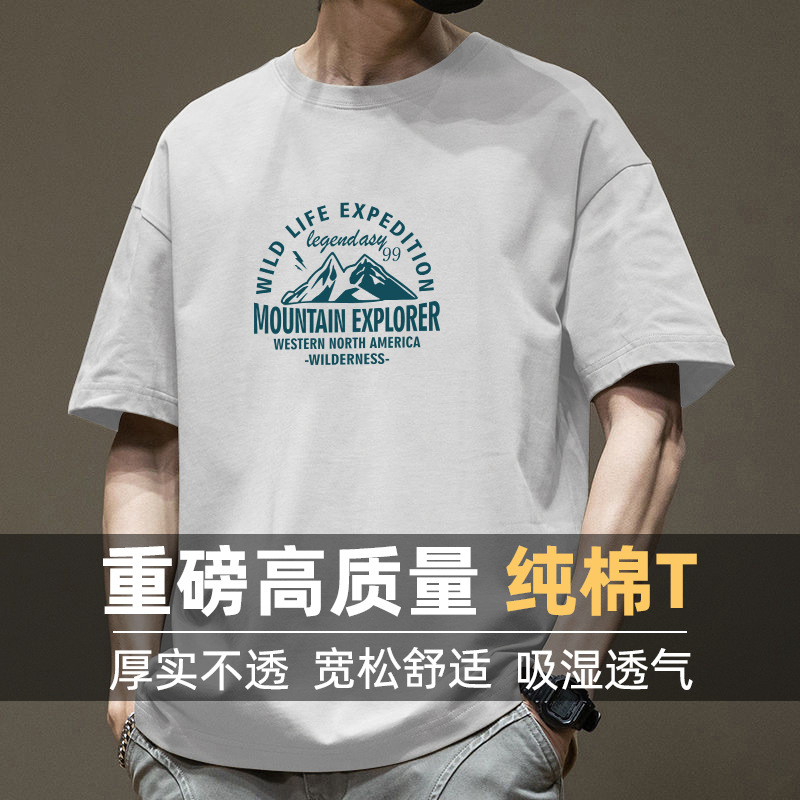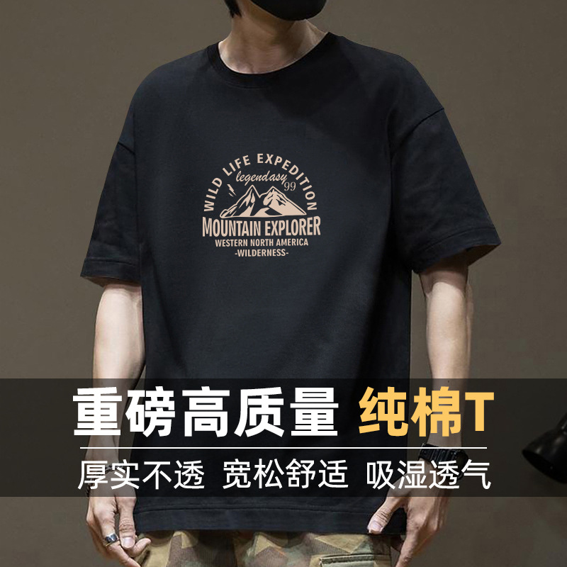半袖男夏100% 純綿重ポンドtシャツ潮牌潮流2025新型ゆるいアメリカ式大衆服