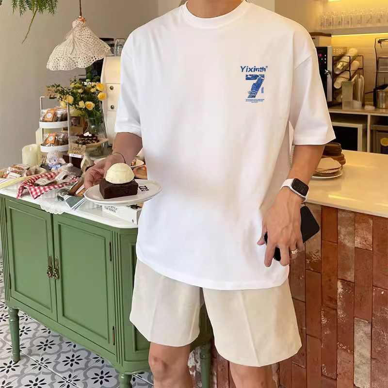 夏tシャツ男性半袖ゆるい純綿半袖ins潮牌かっこいい五分袖tシャツ男性香港風服