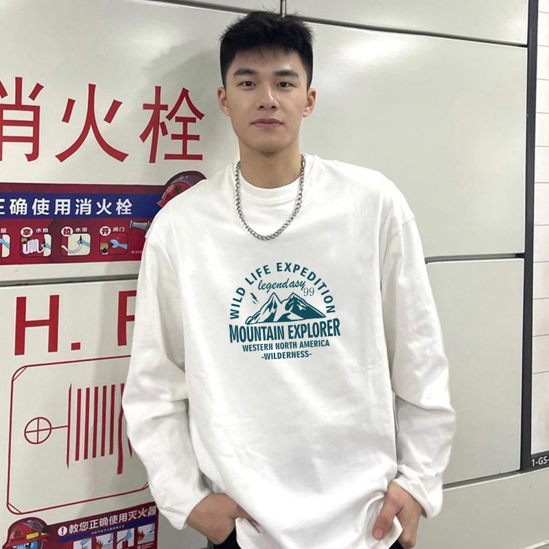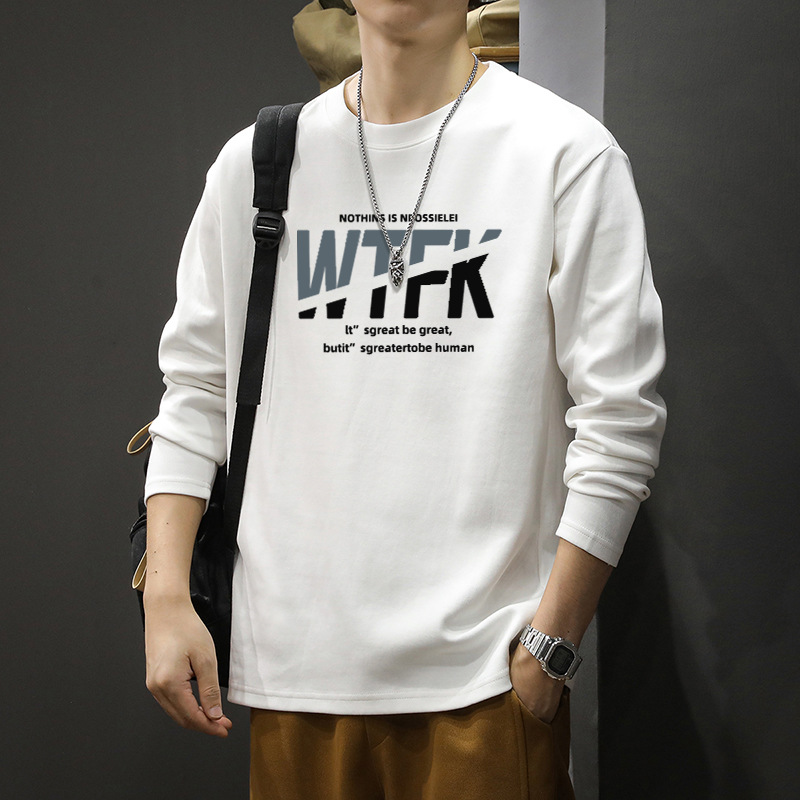 白い長袖のtシャツの男性の秋冬の2024の新型のゆったりしている底のシャツの中で青少年の上着の純綿のtシャツを掛けます。