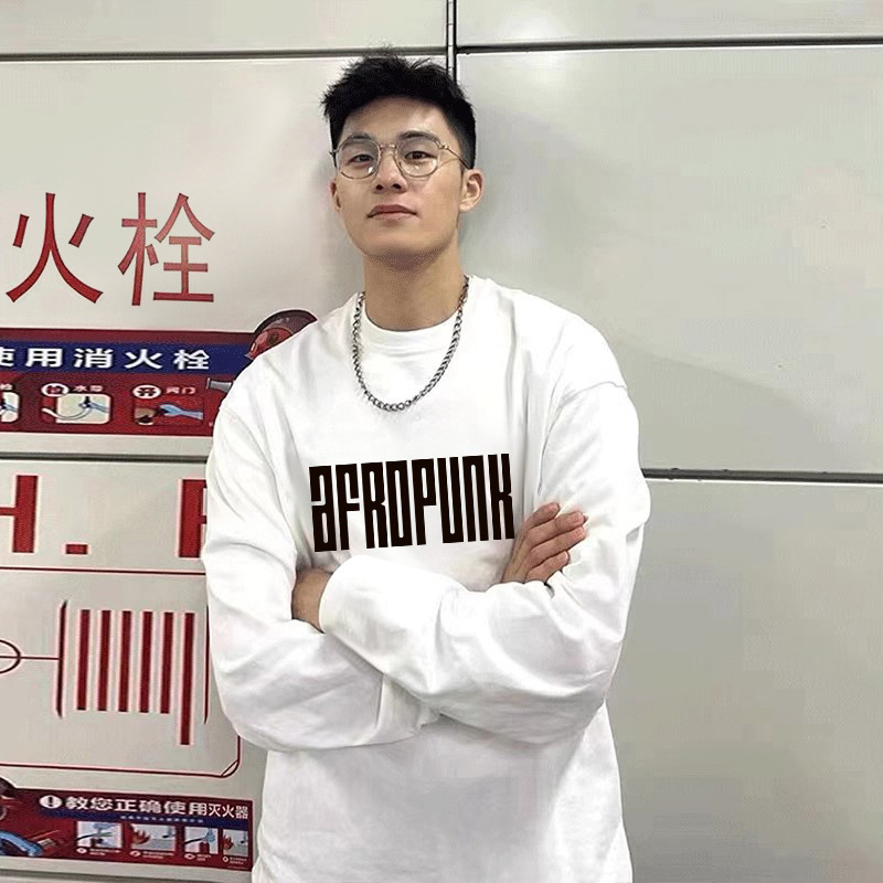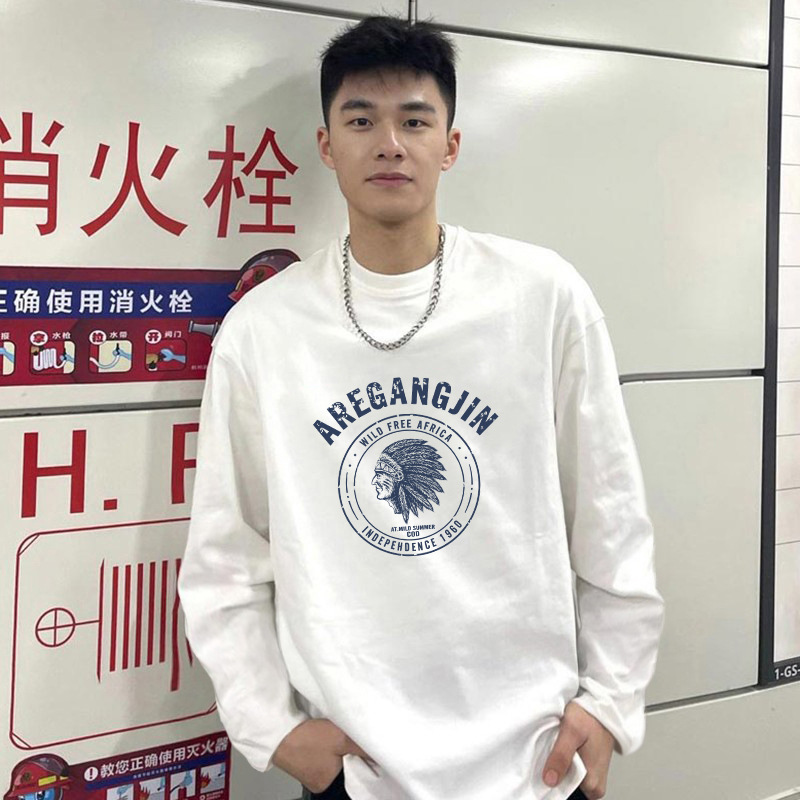 アメリカのレトロな長袖tシャツ男性の春と秋の上着の外着はゆったりしています。