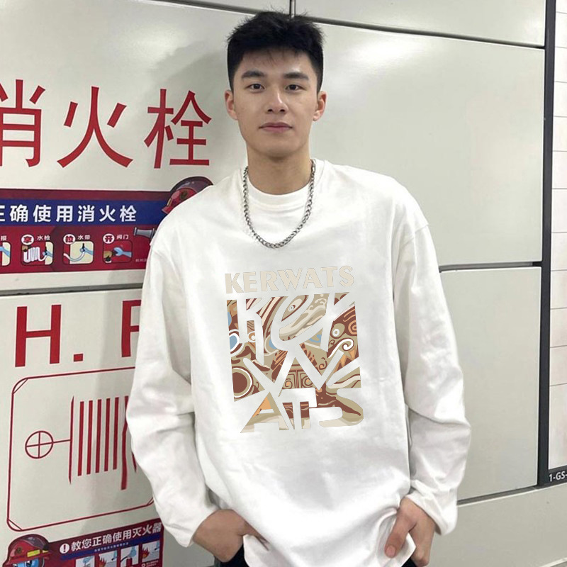 春秋200g重ポンド精櫛綿長袖tシャツ男性ファッションブランドのプリントがゆったりしています。