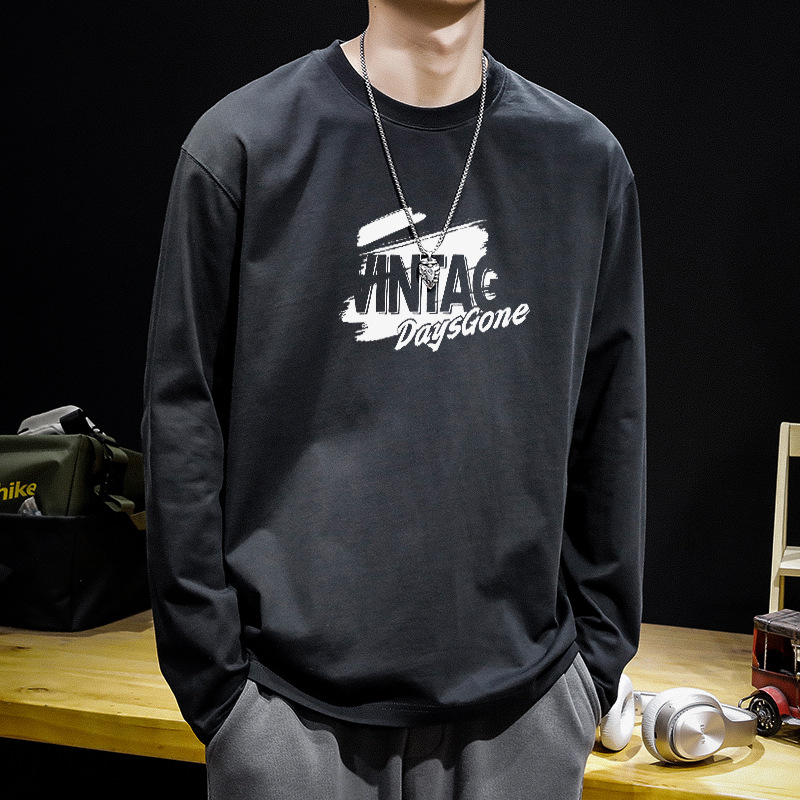 日本のファッションブランドのアルファベットの重いポンドの純綿の長袖のtシャツの男性のゆったりしている春と秋の綿の白い底のシャツの上着