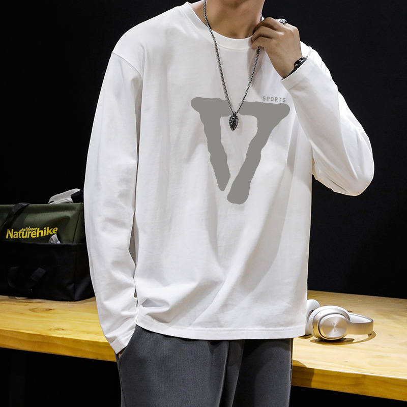 白い長袖のtシャツの男性の秋冬の2024の新型のゆったりしている底のシャツの中で青少年の上着の純綿のtシャツを掛けます。