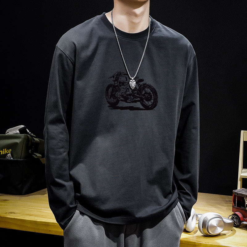 長袖tシャツ男2024春の新型重ポンド純綿の中に薄い丸襟を掛けて、大きいサイズのカジュアルシャツを作ります。