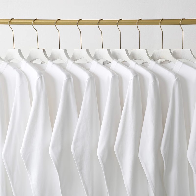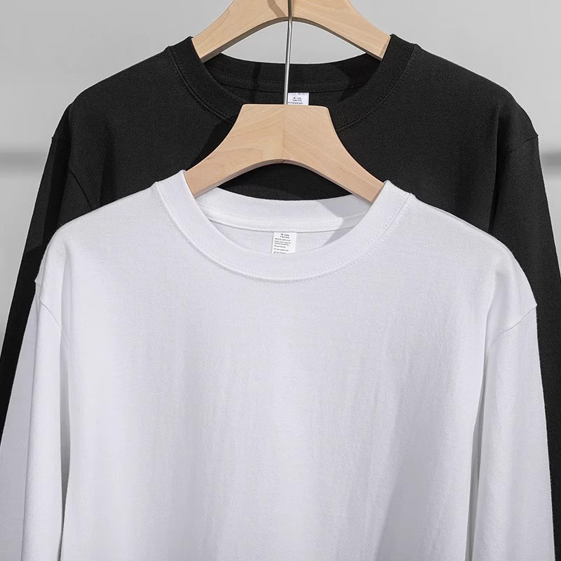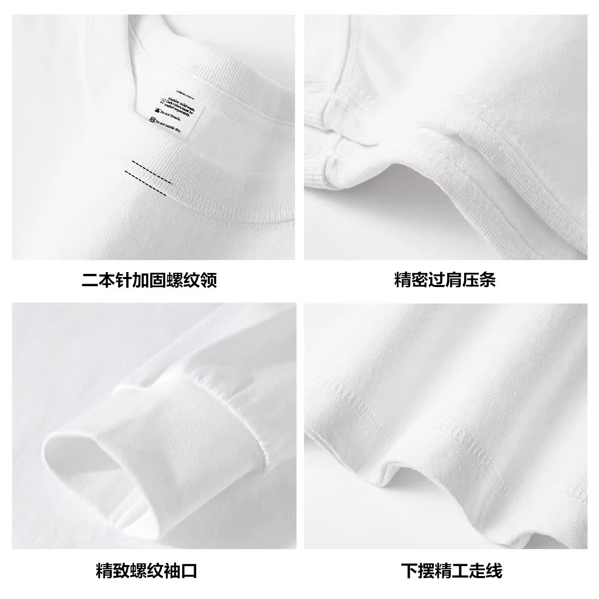 重ポンド200グラム純綿tシャツ男性春のファッションブランドのレトロな純色長袖のボトムシャツ