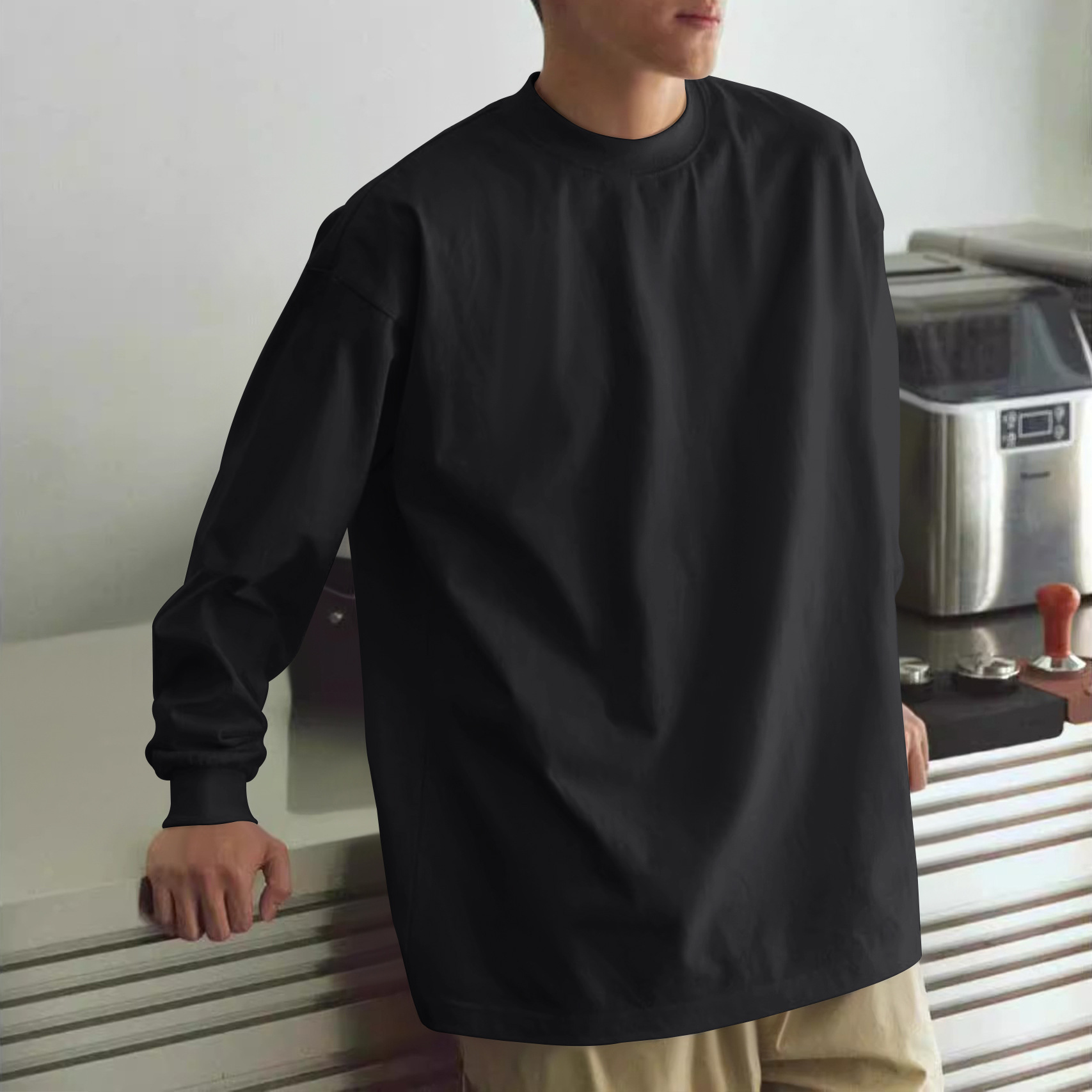 ゆったりとしたプルオーバーの新作厚手長袖シャツ、ベースレイヤー、ラウンドネック、春秋、メンズ、純綿、香港風