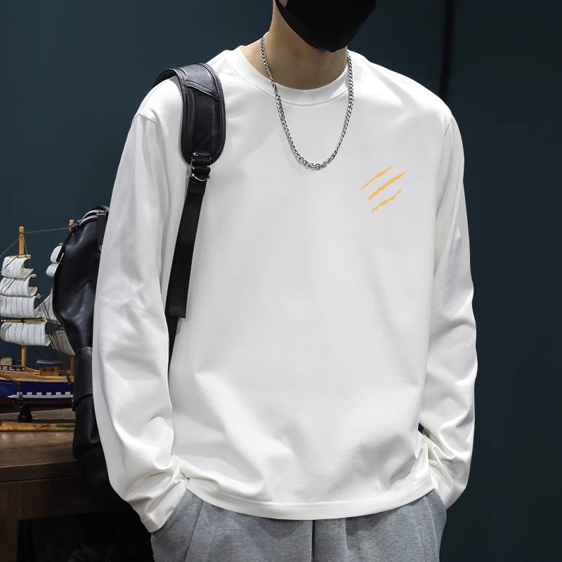 白い長袖のtシャツの男性の秋冬の2024の新型のゆったりしている底のシャツの中で青少年の上着の純綿のtシャツを掛けます。