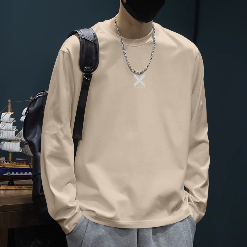長袖tシャツ男2024春秋の新型ゆるい重ポンド純綿青少年丸襟プルオーバー
