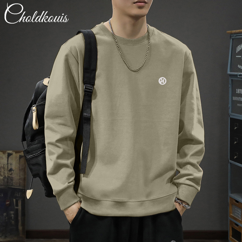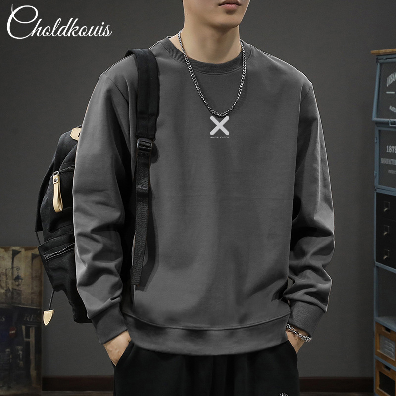 日本のシンプルな純色のパーカーの男性の丸首はゆったりしていて、太っています。