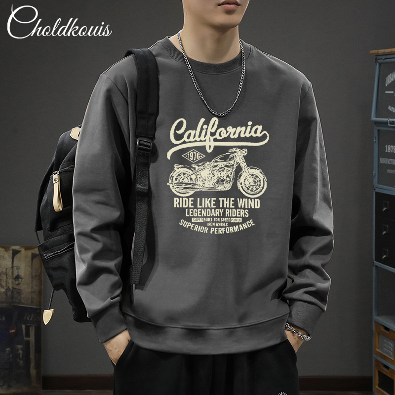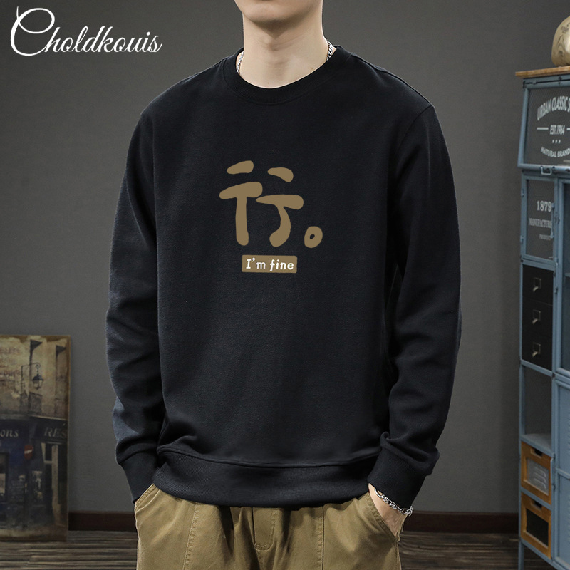 パーカー男性の春と秋の丸首長袖コートアメリカのファッションブランドのプリントスポーツ青少年男性の重いポンドの上着