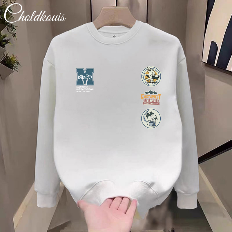 アメリカの復古風衛衣男春秋オリジナルアルファベットプリントファッションブランドとベルベットのゆるいカップルの丸首コート