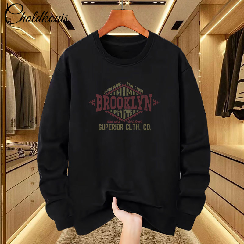 重いポンドのアメリカの復古の純粋な黒色の丸首の衛衣の男性の春秋の新型の高級感のファッションのブランドのゆったりしているカジュアルなコート